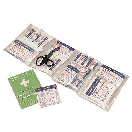 Handliche Tasche aus Nylon mit zusätzlicher Außentasche. Für den persönlichen Bedarf, Gebrauchsmuster angemeldet. Inhalt nach DIN 13 157 + Verbandbuch DIN A 5 + Stift. Für Verwaltungs- und Handelsbetriebe bis 50 Beschäftigte. Für Herstellungs- und Verarbeitungsbetriebe bis 20 Beschäftigte. Für Baustellen mit bis zu 10 Beschäftigten.